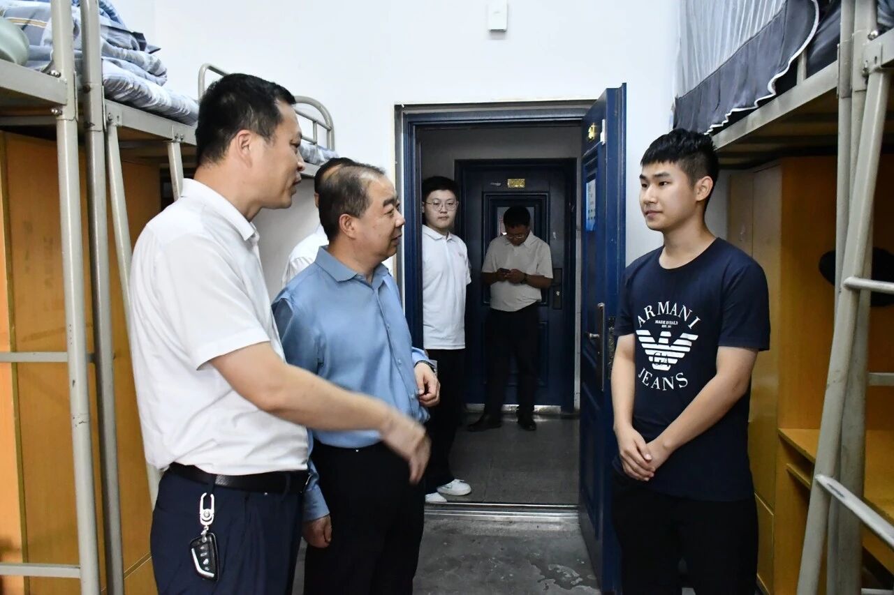 在新生宿舍,卜校长关切地询问新生的生源地与入校感受,并就生活起居、学业规划等话题与新生进行深入交流。他特别强调安全意识与生活习惯养成的重要性,嘱咐同学们要尽快完成角色转换,适应大学集体生活。他还鼓励同学们要珍惜大学时光,做好学业规划,积极参与校园文化活动,全面提升自身综合素质。学院领导表示将持续关注新生入学后的适应情况,并叮嘱新生要尽快适应新的学习和生活环境,遇到任何困难及时向学院领导、辅导员或班主任反映,学院将全力为大家提供帮助与支持。