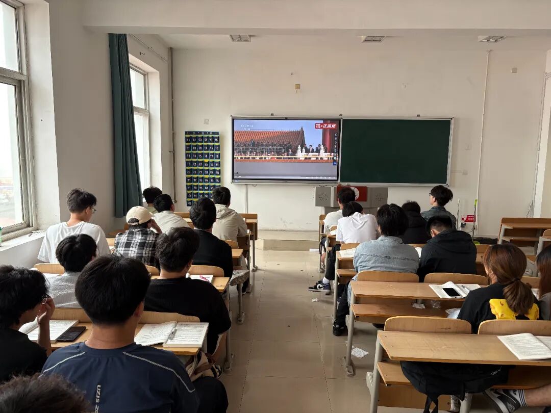 铭记伟大历史胜利,凝聚正义和平力量。2025年9月3日上午9时,纪念中国人民抗日战争暨世界反法西斯战争胜利80周年大会在北京天安门广场隆重举行。建筑工程学院领导班子积极组织全体教师、学生党员、积极分子及各班级分别在6206会议室、8号公寓楼一站式学生社区118、5303等教室收看大会实况直播,共同回顾波澜壮阔的抗战历史,深切缅怀革命先烈,弘扬伟大抗战精神。