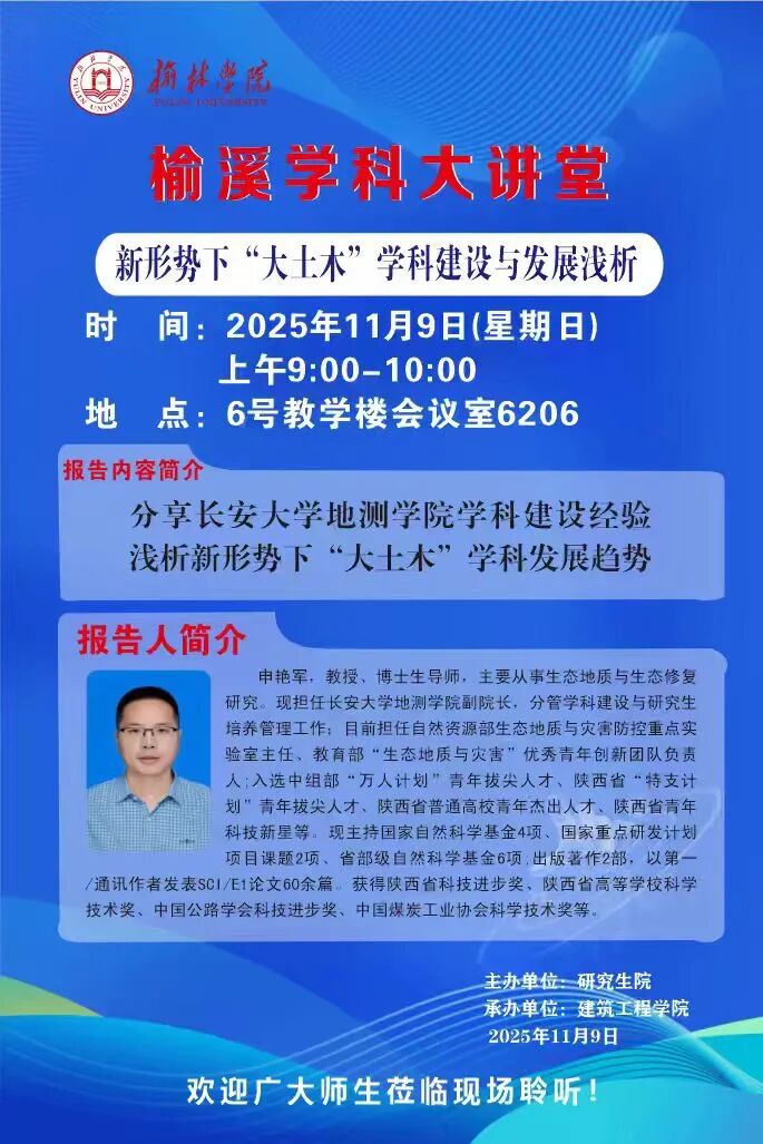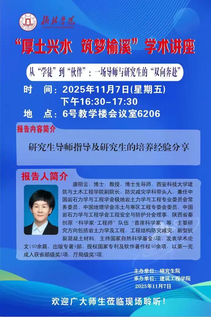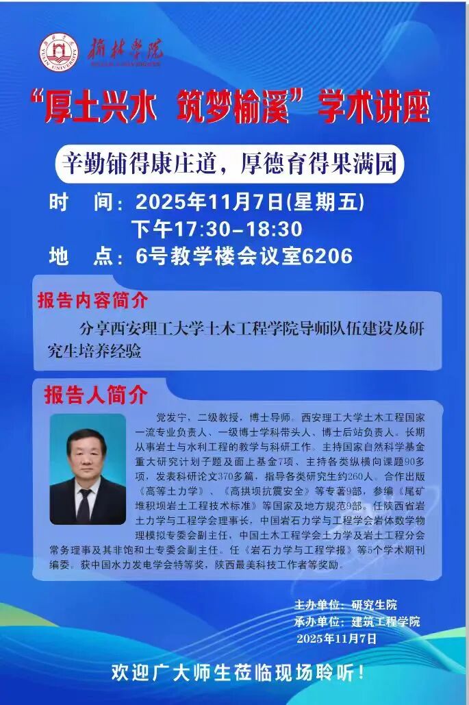 榆溪学科大讲堂||“厚土兴水,筑梦榆溪”学术讲座