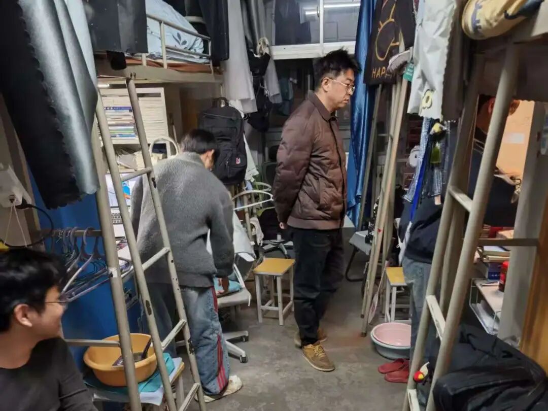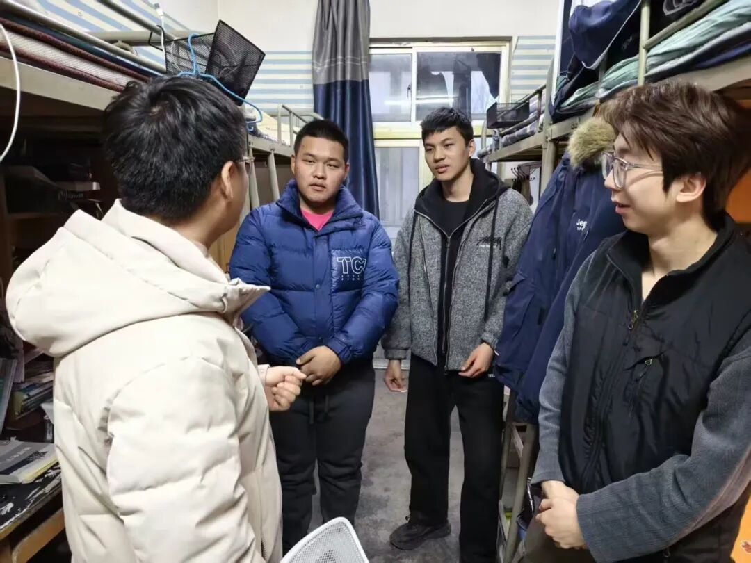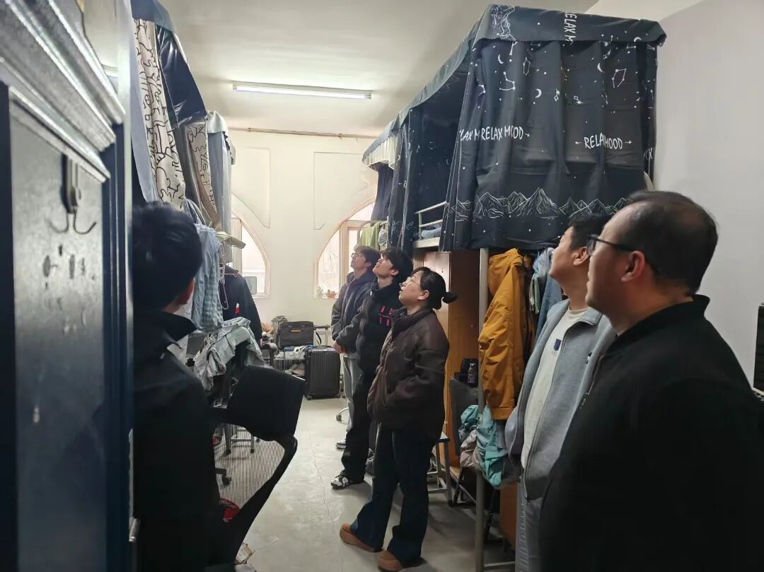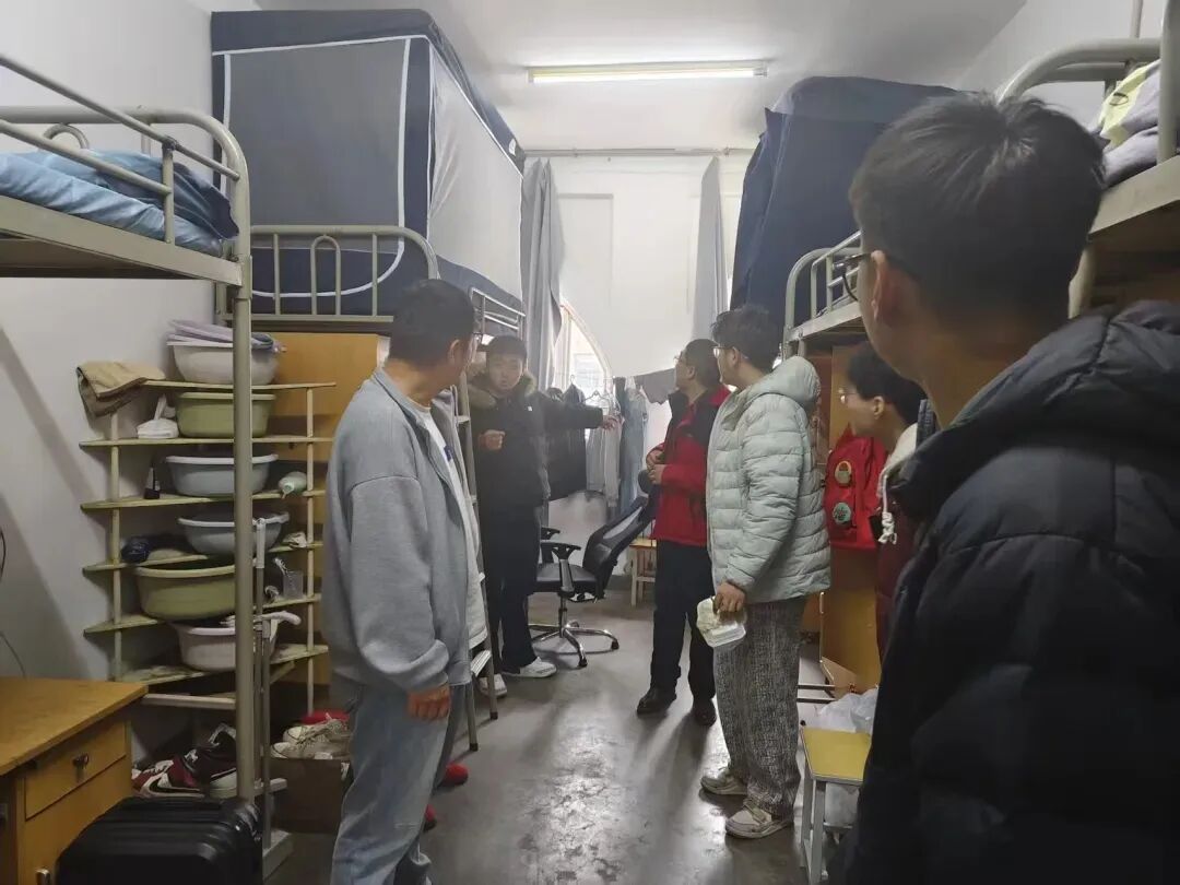 走访过程中,党总支书记薛国栋与院长李玉根一同与同学们亲切交流,细致询问大家寒假生活及新学期规划,提醒同学们注意春季天气变化,及时调整作息,以积极饱满的精神状态投入新学期的学习,并要求同学们要高度重视宿舍安全与卫生,树立劳动意识,共同营造整洁有序、文明和谐、安全稳定的宿舍居住环境。
