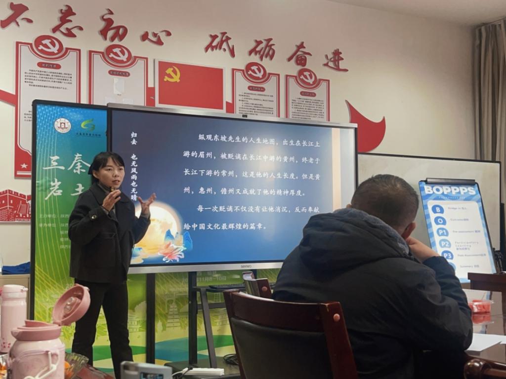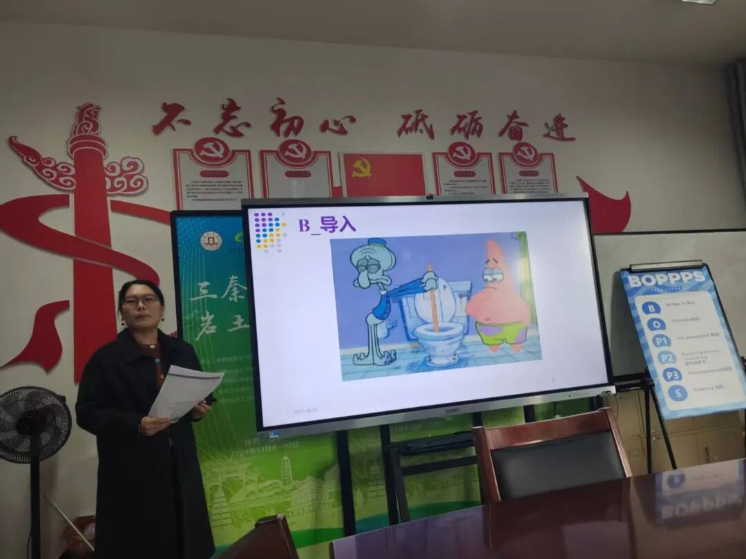 在教学经验分享环节,工程管理专业师丽老师结合自身教学实践,从课程思政的有机融入、BOPPPS教学结构介绍以及如何激发学生课堂主动性等方面,分享了宝贵的经验。BOPPPS教学结构是一个非常经典且有效的教学设计框架,尤其适合于聚焦的、以学生为中心的教学单元设计。其结构包含引言、目标、前侧、参与式教学、后侧和总结六个环节,优势在于其结构性、目标性和互动性的有机结合,好似一张地图引导教师有条理地设计课程,并时刻将学生的“学”放在中心位置。