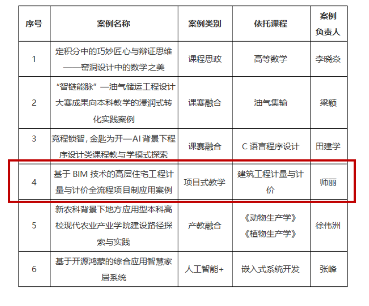 近日,陕西省教育厅公布了2025年度本科教学案例认定名单,我院师丽老师申报的《基于BIM技术的高层住宅工程计量与计价全流程项目制应用案例》成功入选,标志着我院在深化教学改革、推动课程建设方面取得又一重要成果。