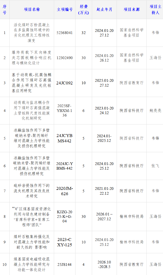 团队积极开展对外交流,先后与陕西建工控股集团有限公司、榆林市高科建设工程质量检测有限公司、中煤科工(陕西)资源循环研究院有限公司及神木能源集团煤炭有限公司等建立了合作关系,共同参与人才培养、共同开展科技研发、共同建设实验室及“科学家+工程师”队伍,取得了良好效果。