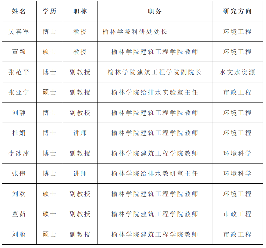 团队名称:陕北水资源保护与水环境治理创新团队