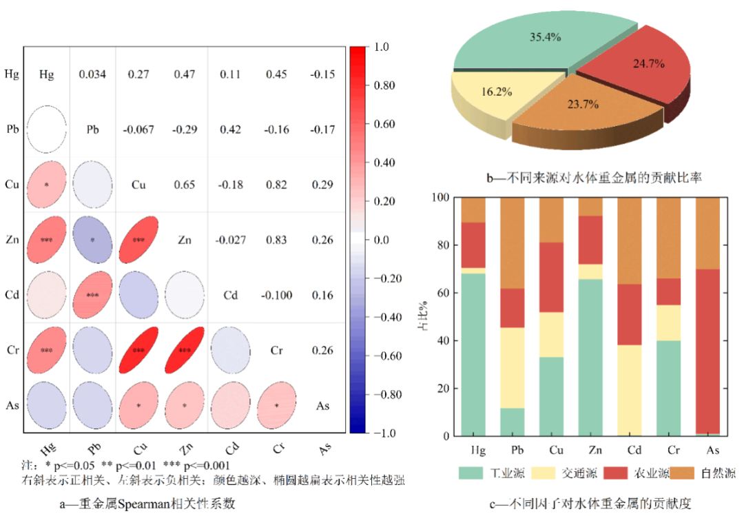 本研究以我国最大沙漠淡水湖泊红碱淖为对象,系统分析 2013-2024 年水体Hg、Pb、Cu、Zn、Cd、Cr、As 7 种重金属浓度特征,运用APCS-MLR 模型完成污染源定量解析,并结合 USEPA 模型开展人体健康风险评估。结果表明,研究区水体重金属平均浓度符合地表水 Ⅲ 类标准,总浓度较 2016 年前下降 47.73%,与当地关闭小型煤矿、实施煤矿区生态修复密切相关;重金属污染源于工业源(35.44%)、农业源(24.67%)、自然源(23.65%)、交通源(16.23%),工业源为首要来源;非致癌健康风险可忽略,致癌风险超警戒值,经口摄入为主要暴露途径,As、Cd 为核心管控元素。研究填补了红碱淖水体重金属系统研究空白,为湖区生态管理与居民健康防控提供理论依据。