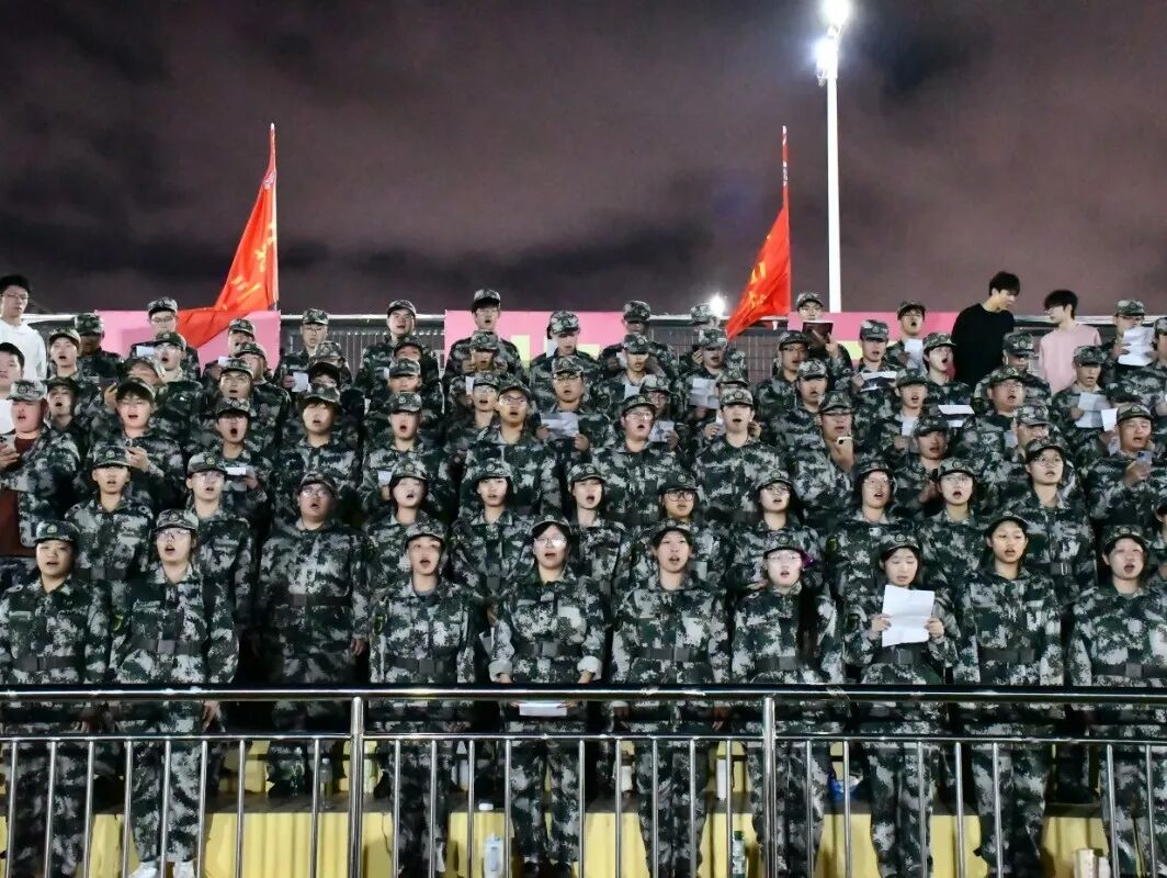 自军训开展以来,同学们利用每日训练间隙和晚训时间,在指导老师的悉心指导下,从学唱歌曲到理解内涵,从把握音准到配合节奏,不断调整和完善。