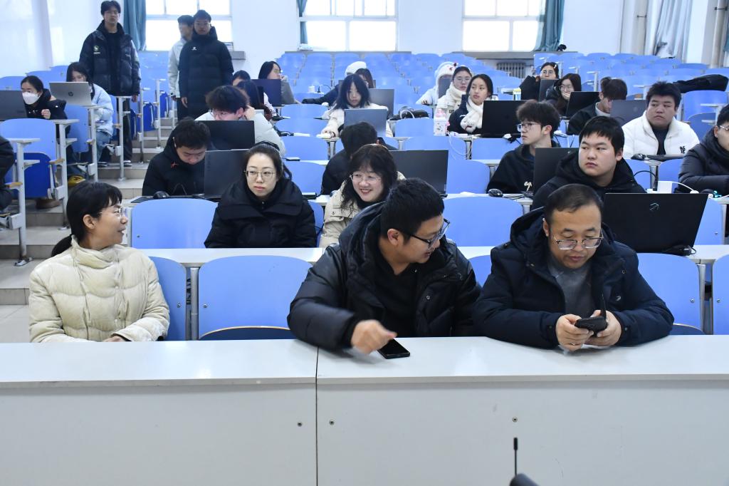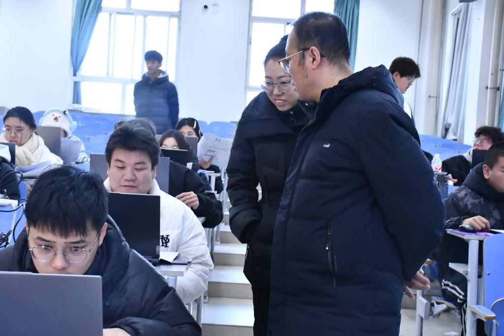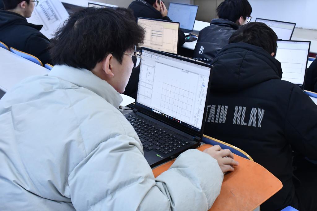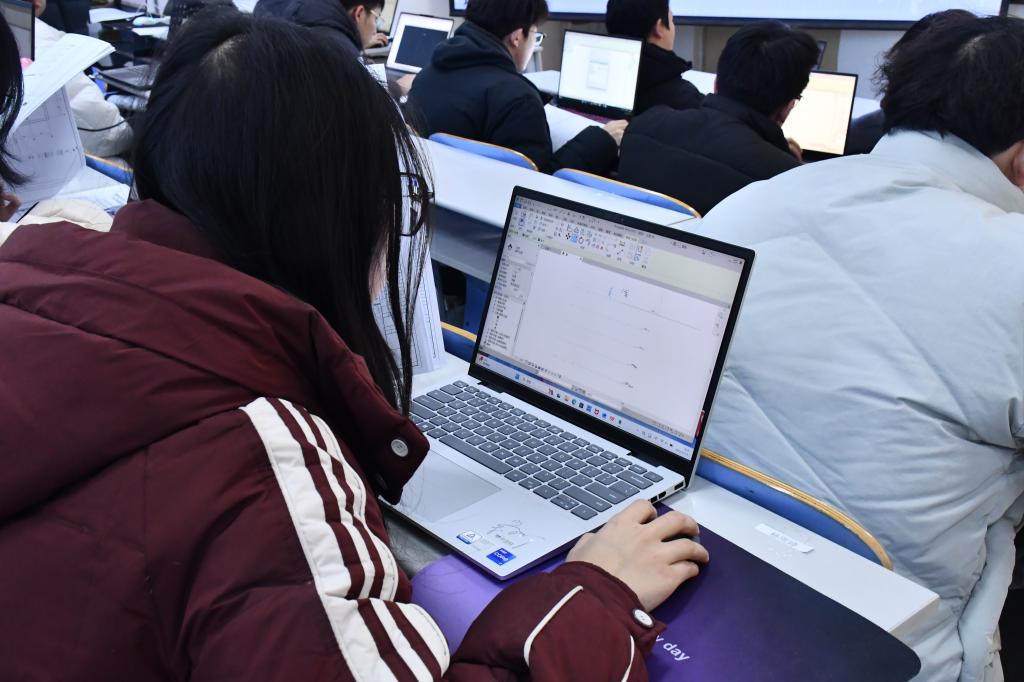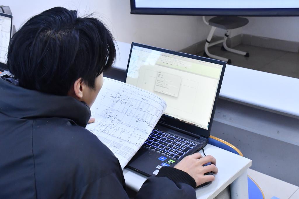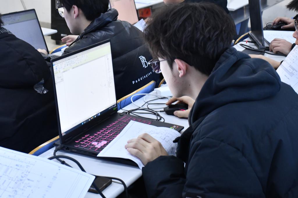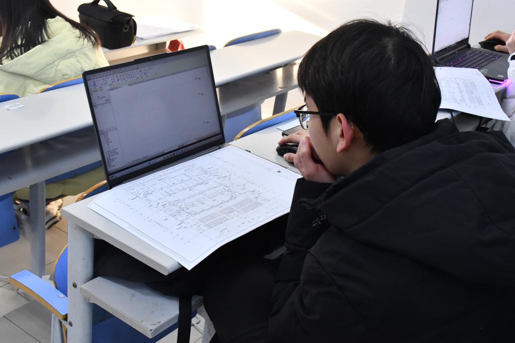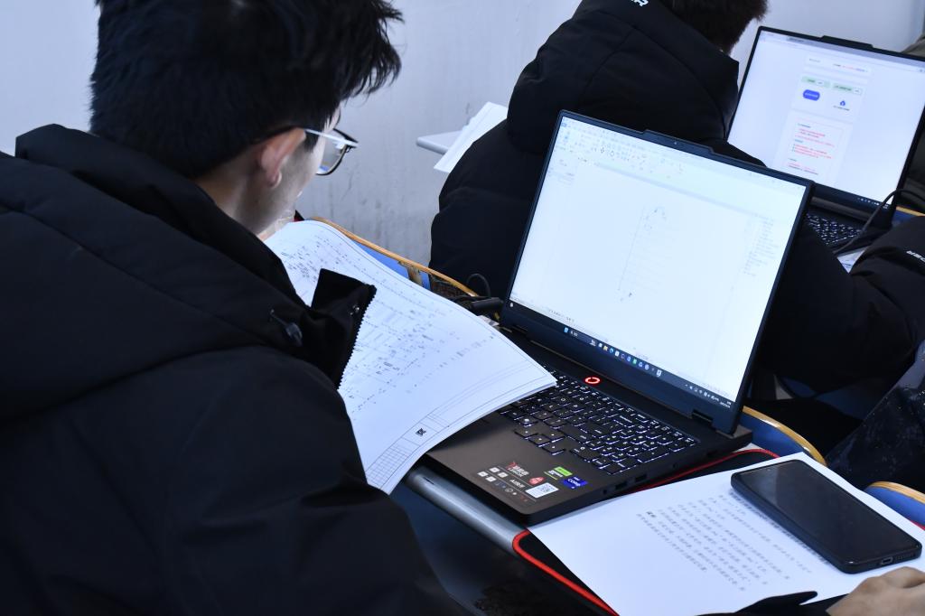 比赛期间,参赛学生全神贯注于计算机操作,熟练运用绘图软件进行图形构建与细节调整,现场氛围良好。学院领导与评委老师巡视观察,关注参赛学生操作过程与阶段性成果。