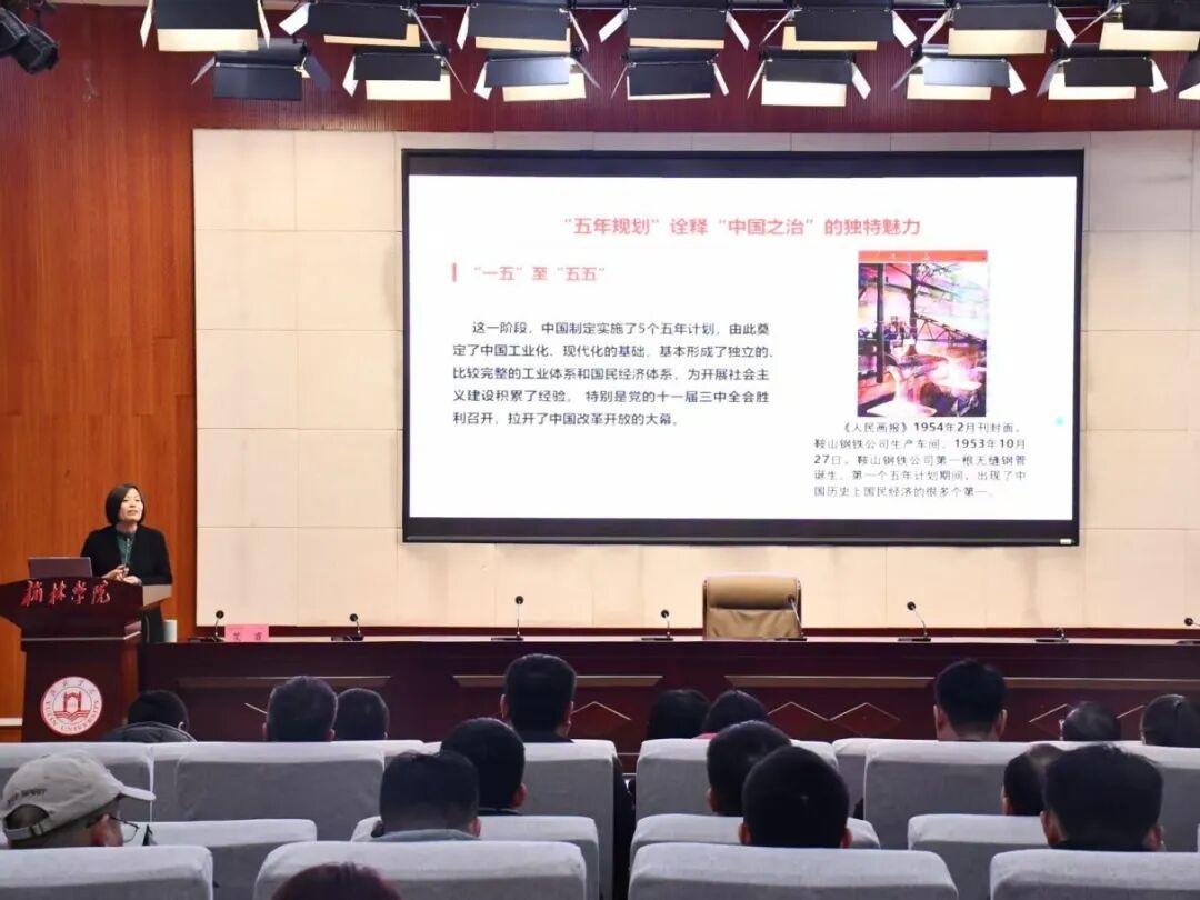 马克思主义学院艾霞老师以“锚定‘三位一体’战略推动全会精神融入思政教育”为题,从理论逻辑、实践方向与融入路径三个层面系统阐述了学习贯彻党的二十届四中全会精神的核心要义。她指出,必须深刻把握教育、科技、人才一体推进的战略部署,将全会精神精准对接国家发展目标融入课堂教学与实践育人,引导师生认识时代使命;同时强调学习贯彻党的二十届四中全会精神是长期政治任务,学校应立足新发展阶段,以服务“十五五”规划与国家战略为导向,着力培养骨干力量,尤其发挥年轻教师关键作用,切实推动全会精神转化为服务地方建设的实际成效。