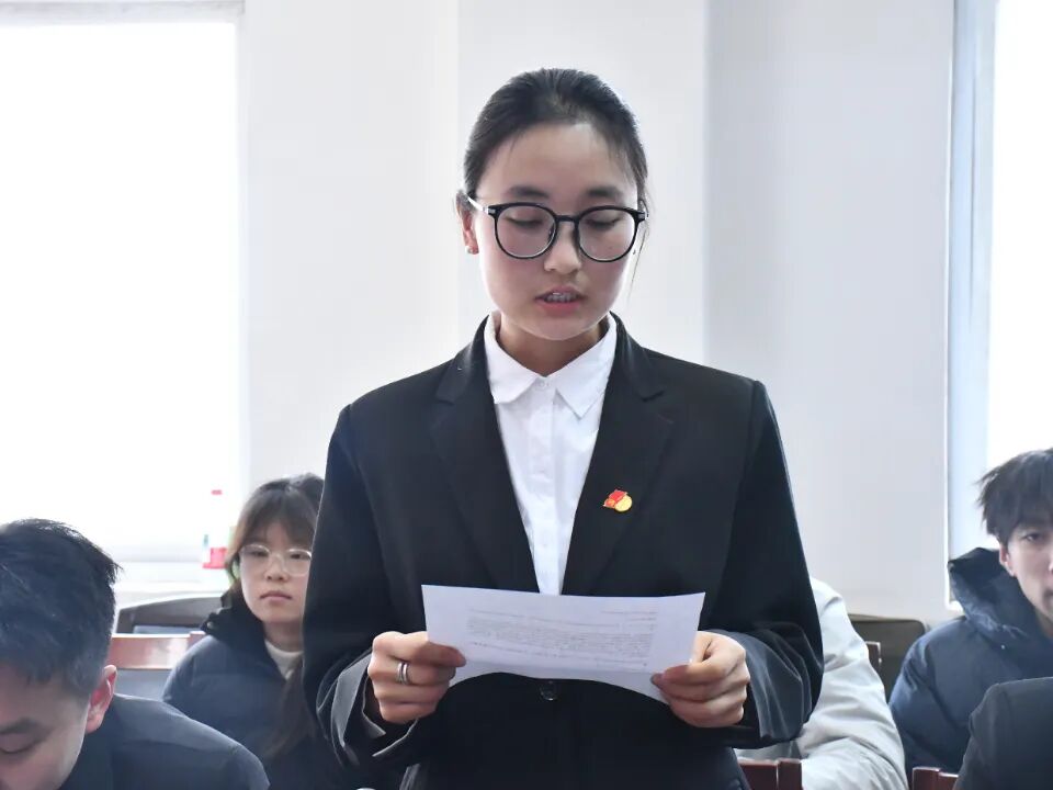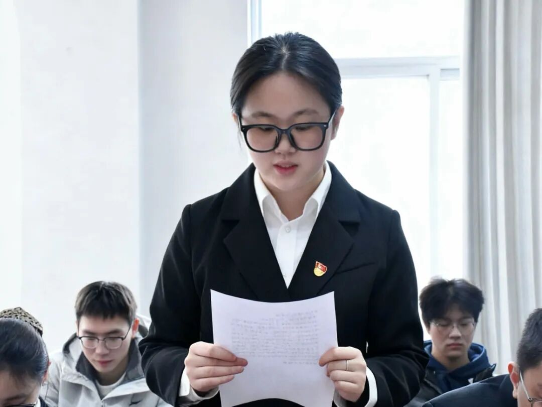 学生党支部副书记韦泽涛代表支部向宋秉锐等8名按期转正的党员同志表示祝贺。他强调,身份的转变意味着更高的责任与要求,同志们应以此为新的起点,在今后的学习与工作中不忘初心、践行使命。