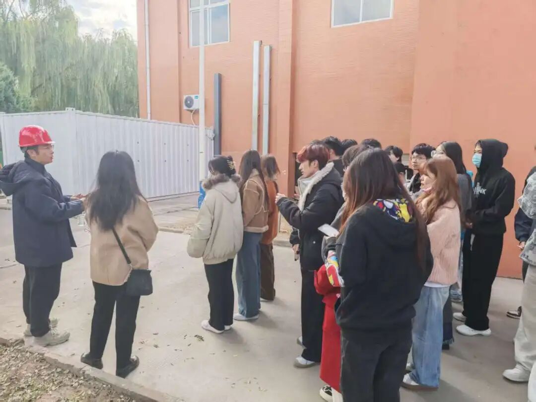 在实习过程中,公司技术人员为学生讲解了污水处理的主要流程,并带领学生实地参观粗格栅、生化反应池、沉淀池、深度处理车间等关键工艺单元,介绍从进水检测、预处理、生物处理到出水达标的全过程技术要点。学生结合专业课程内容,就实际运行中遇到的问题与技术人员进行交流。