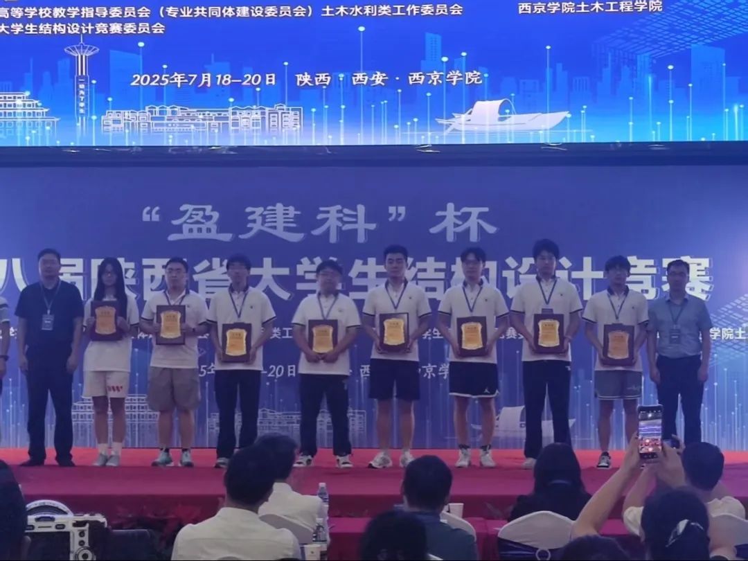 2025年7月18日至20日,第八届陕西省大学生结构设计大赛成功举办。经过为期三天的激烈角逐,榆林学院建筑工程学院学子再创佳绩,由彭军、马文良老师指导的“以实玛利队”(队员:刘杰、万子豪、冯子旭)凭借出色的表现斩获大赛三等奖;由王海任、孟祥振老师指导的“坚如磐石队”(队员:郭羽锌、王蔚澄、马愉桐)同样表现优异,荣获大赛优秀奖;同时,榆林学院建筑工程学院凭借有序组织与整体表现,荣获优秀组织奖。