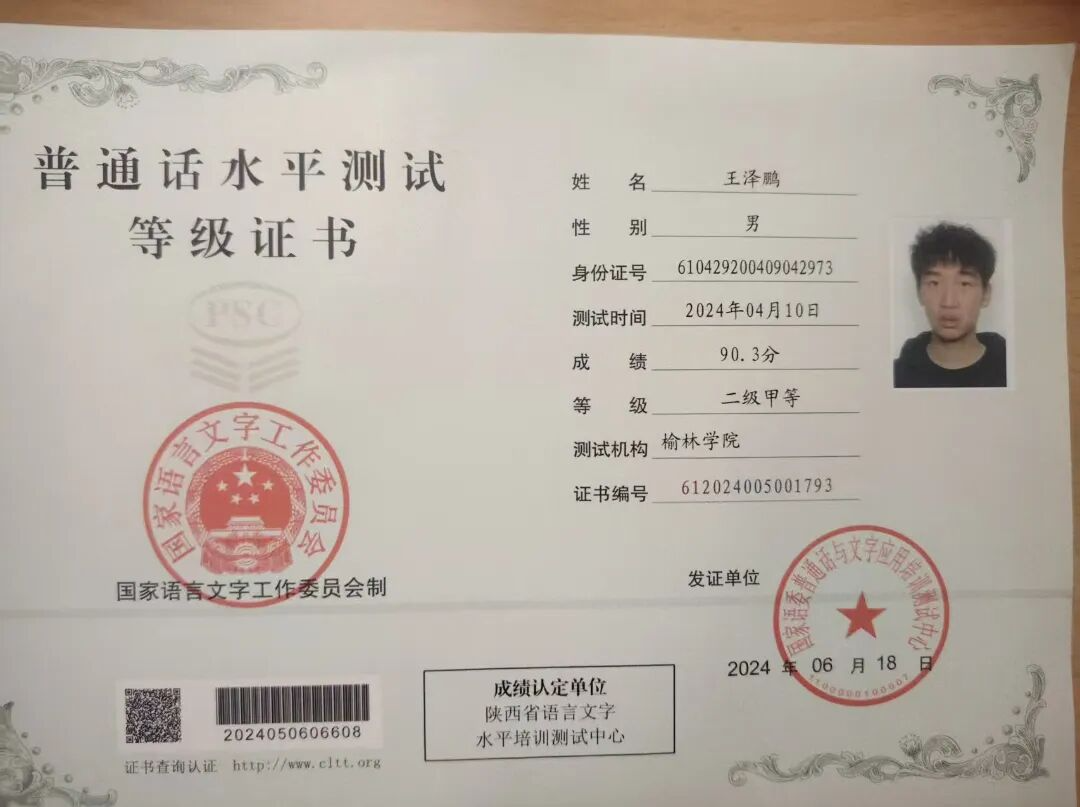 学业方面,他以专业第二的成绩完成课程学习,综合考评排名专业第一;已获得普通话二甲证书,获评“优秀共青团干部”,以扎实学识与责任担当践行青年使命