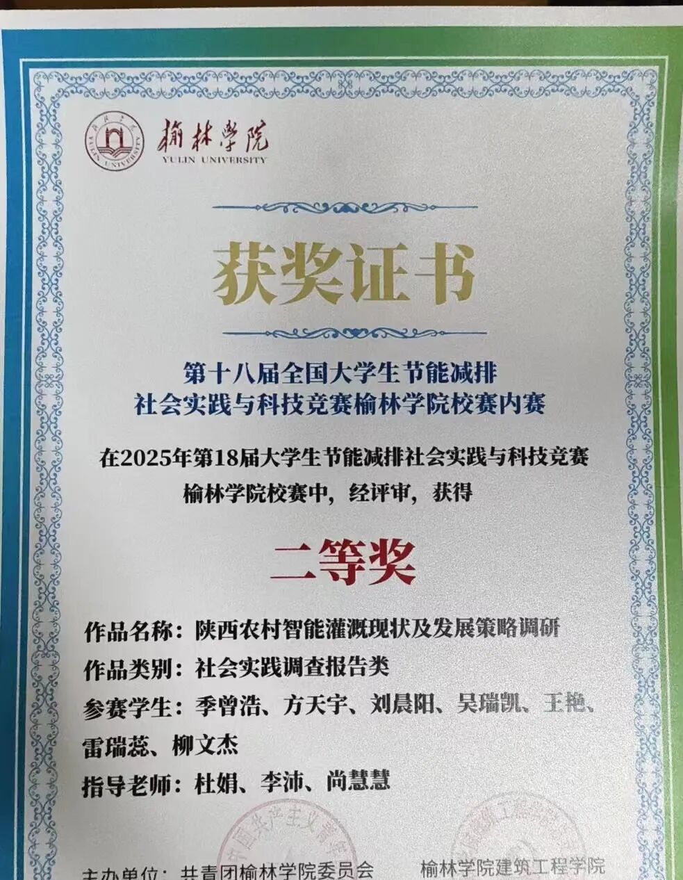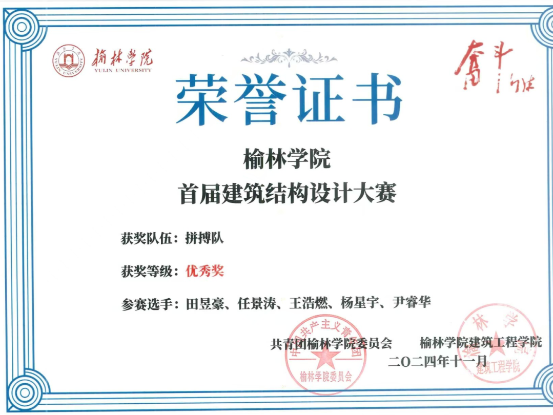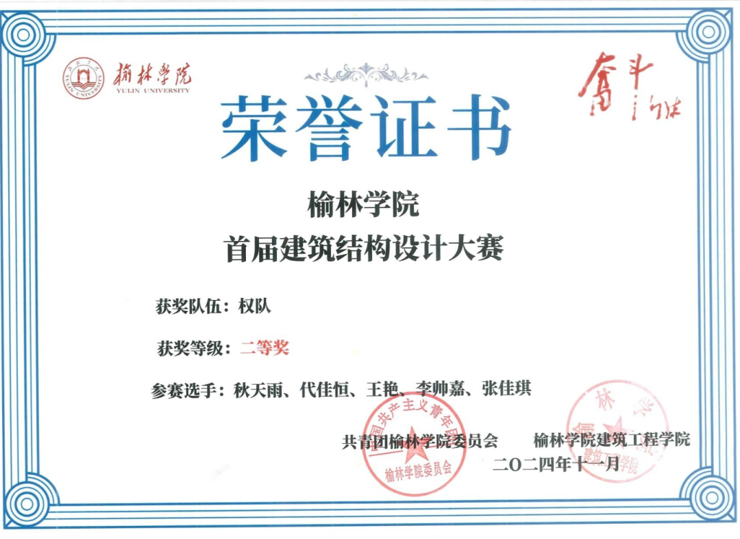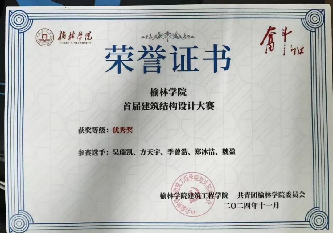 榆林学院首届建筑结构设计大赛校级二等奖