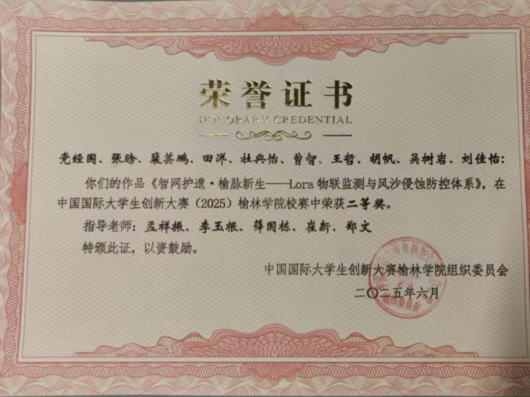 中国国际大学生创新大赛(2025)榆林学院校赛二等奖
