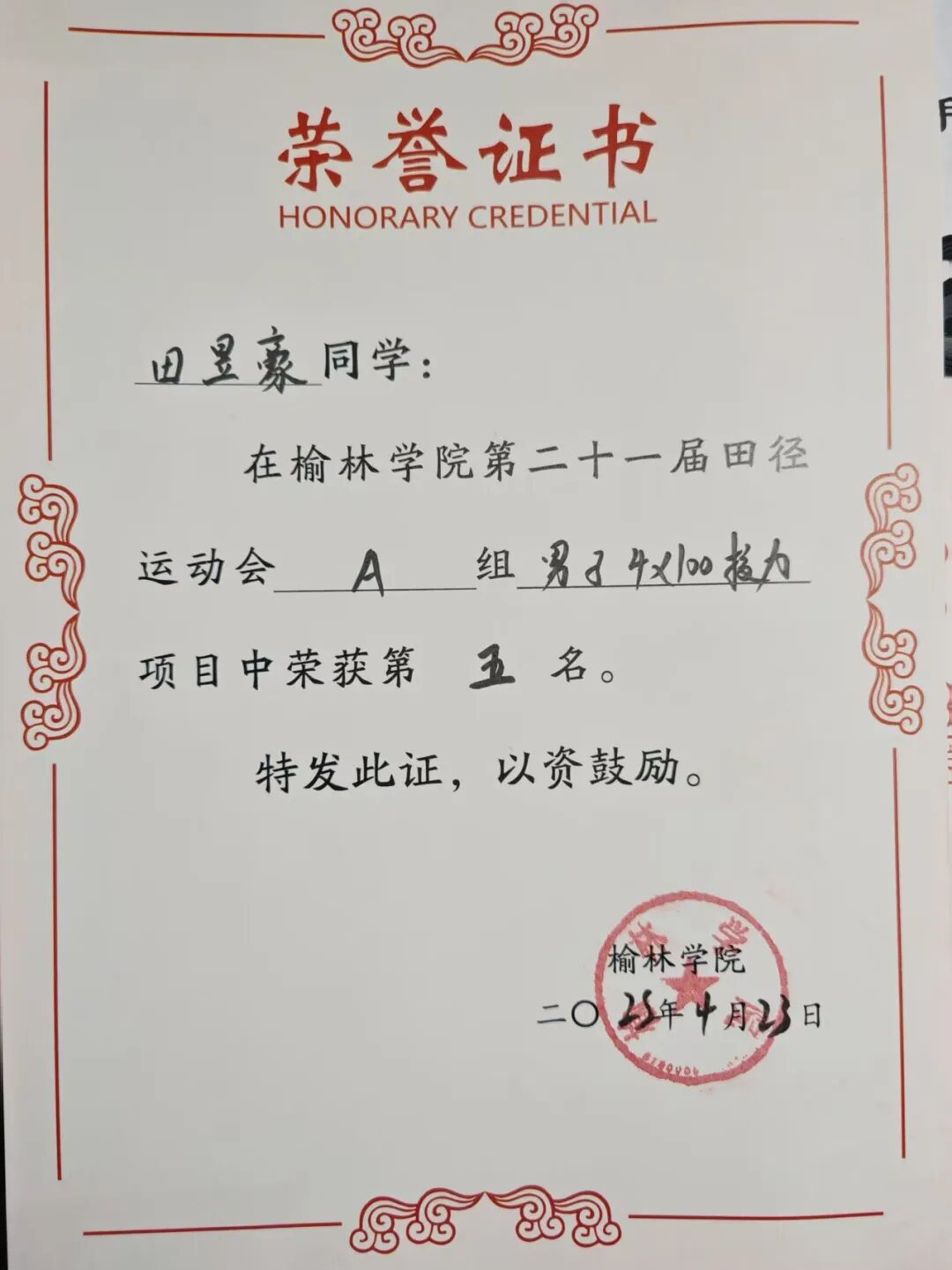 团体4*100第五名